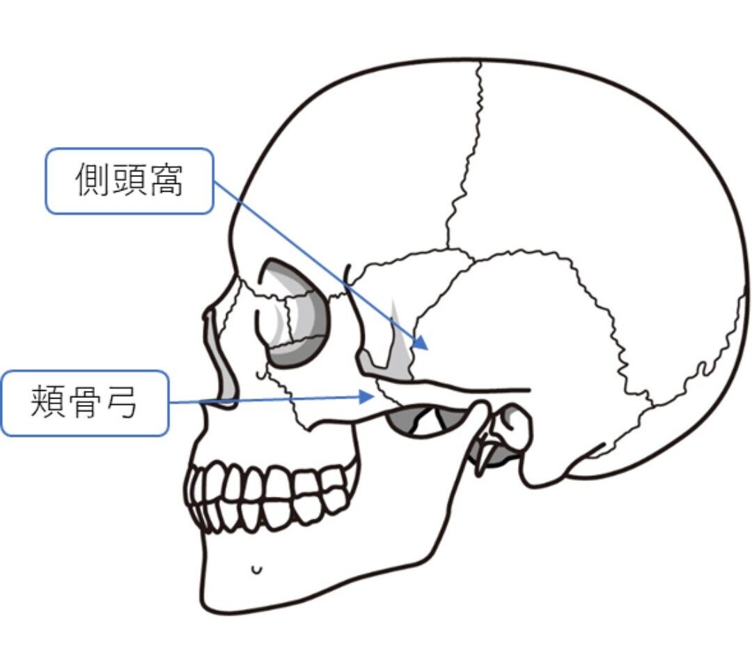 頬骨弓の上は側頭窩という浅いくぼみになっています