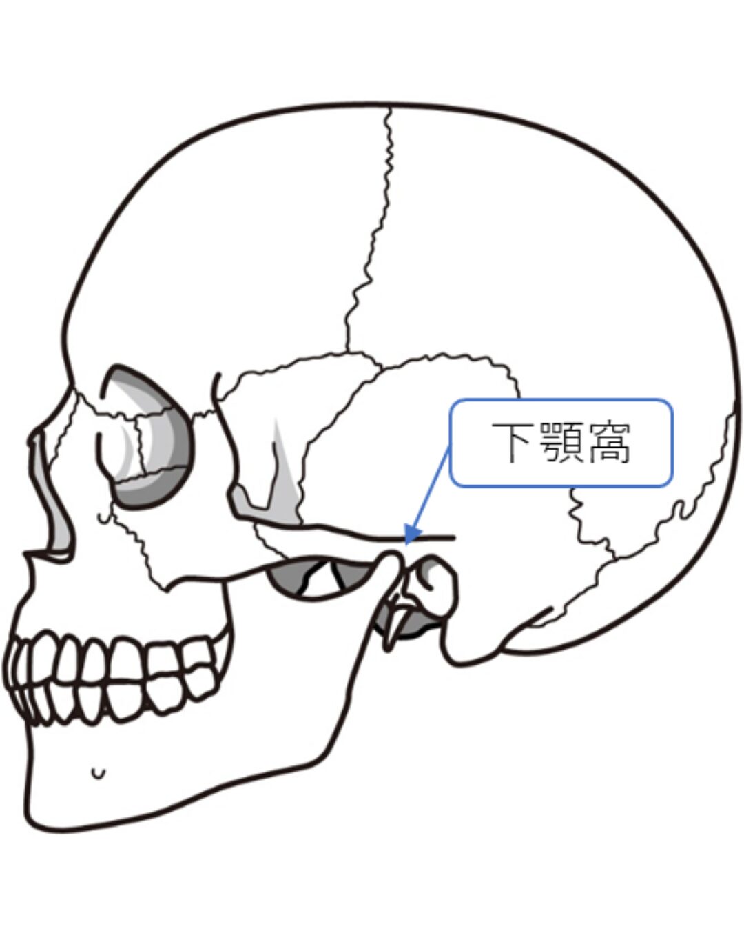 下顎窩には下顎骨の下顎頭が入り、顎関節をつくります